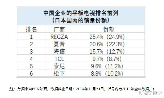 不过由于错误押注等离子电视(平板电视的技术路线之争,最终液晶技术凭借成本低、屏幕薄、能耗低等优势成为主流),再加上韩国和中国家电企业的崛起,日本电视产业节节败退,常年陷入亏损的泥潭,全球市场份额也从2012年的35%大幅下降至2024年的5.1%。